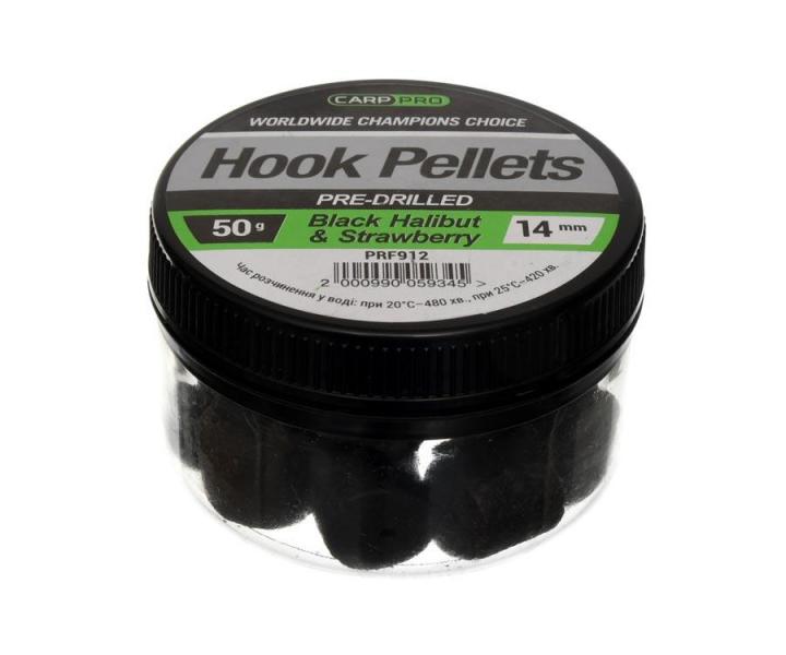 Насадочный пеллетс Carp Pro Hook Pellets Pre-Drilled Black Halibut&Strawberry 14мм