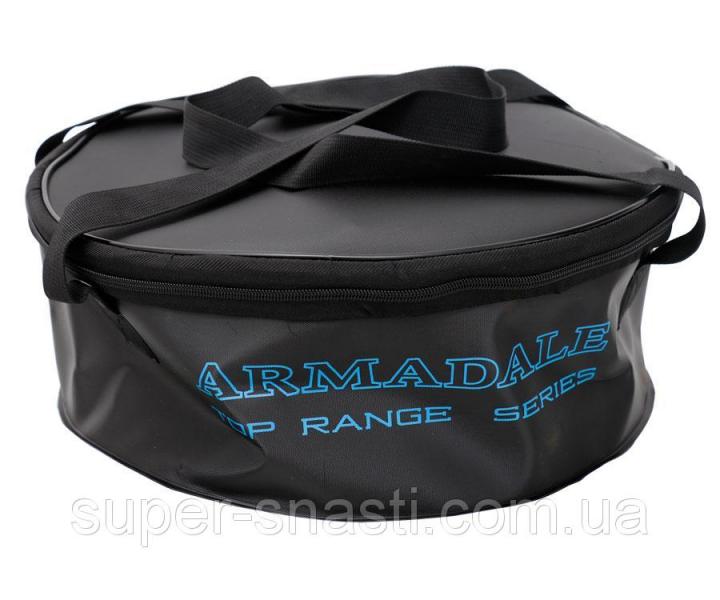 Ведро, предназначенное для замешивания, хранения и перевозки прикормки. Изготовлено из EVA, поэтому обладает малым весом, складывается до компактных размеров, не пропускает воду и запахи. Снабжено крышкой, которая закрывается на молнию. Для переноски предусмотрены ручки.